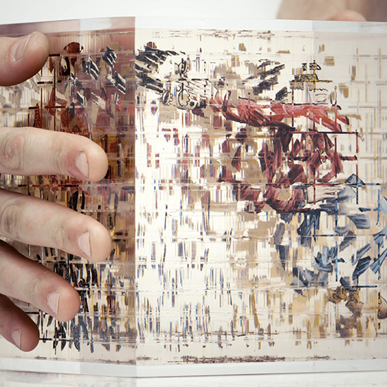 Cubo translúcido esconde 6 imagens pintadas à mão